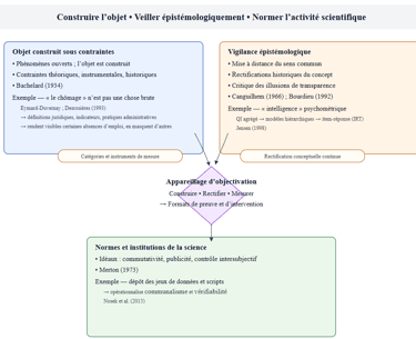 La « méthode scientifique » en sciences sociales est un appareillage d’objectivation de phénomènes ontologiquement ouverts, où l’objet n’est jamais donné mais construit sous contraintes théoriques, instrumentales et historiques (📚Bachelard, 1934). Exemple : « le chômage » n’est pas une chose brute (📰François Eymard-Duvernay) : il résulte d’un faisceau de définitions juridiques, d’indicateurs et de pratiques administratives qui rendent visibles certaines absences d’emploi et en invisibilisent d’autres (📁Desrosières, 1993).